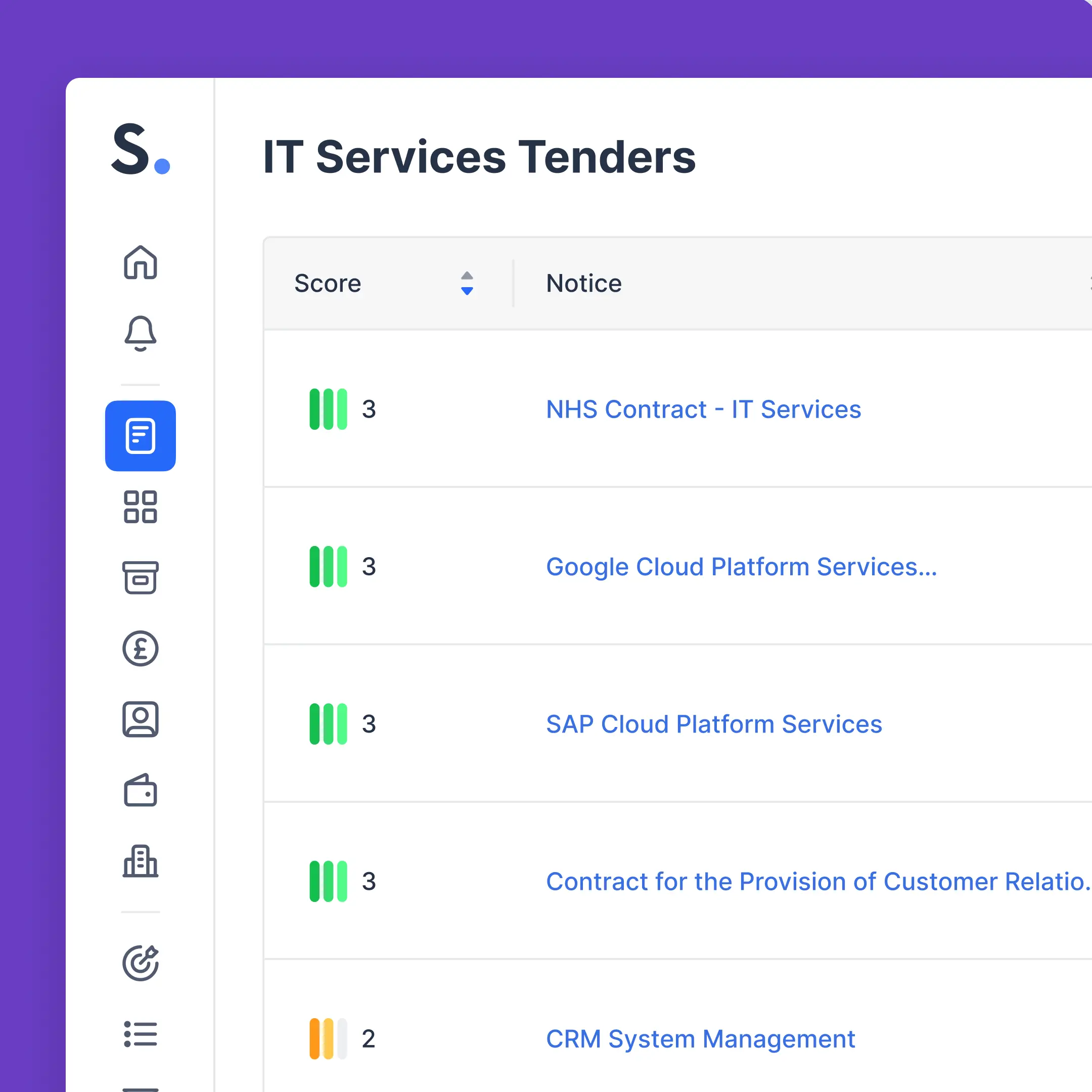 Quickly search tenders using tailored keywords to surface relevant IT services opportunities. Filter by location, contract value, buyer type, and more.